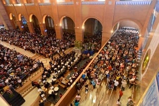 santuario_nacionalO Santuário Nacional de Aparecida registrou no ano de 2014 um número recorde de peregrinos. Foram 12.225.608 visitantes, o que representa 369 mil peregrinos a mais que 2013, quando este número alcançou a casa de 11 milhões e 856 mil pessoas.