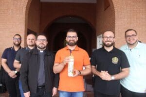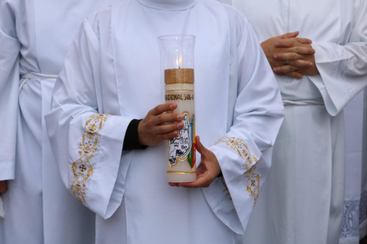 Após a celebração eucarística, os seminaristas participaram do Terço Missionário, organizado pelo COMISE do Regional, rezado na tribuna do Santuário. Durante o momento orante, foi entregue a vela comemorativa dos 40 anos do COMISE Brasil, que peregrinará por todos os seminários do Regional Sul 1 neste ano e no próximo.