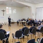 Com a temática “o presbítero e a assessoria de comunicação pastoral e institucional”, o encontro contou com a assessoria de Marcello Zanluchi, pesquisador e doutor em Comunicação e Semiótica. Marcelo também possui vasta experiência na prática pastoral, chegando a ser coordenador da Pascom da Diocese de Bauru (SP), seu local de residência.