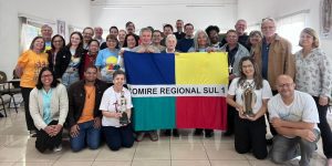 Na celebração de encerramento, o casal de missionários César e Rosani foram enviados para Moçambique onde nosso Regional tem um projeto de missão além-fronteiras.