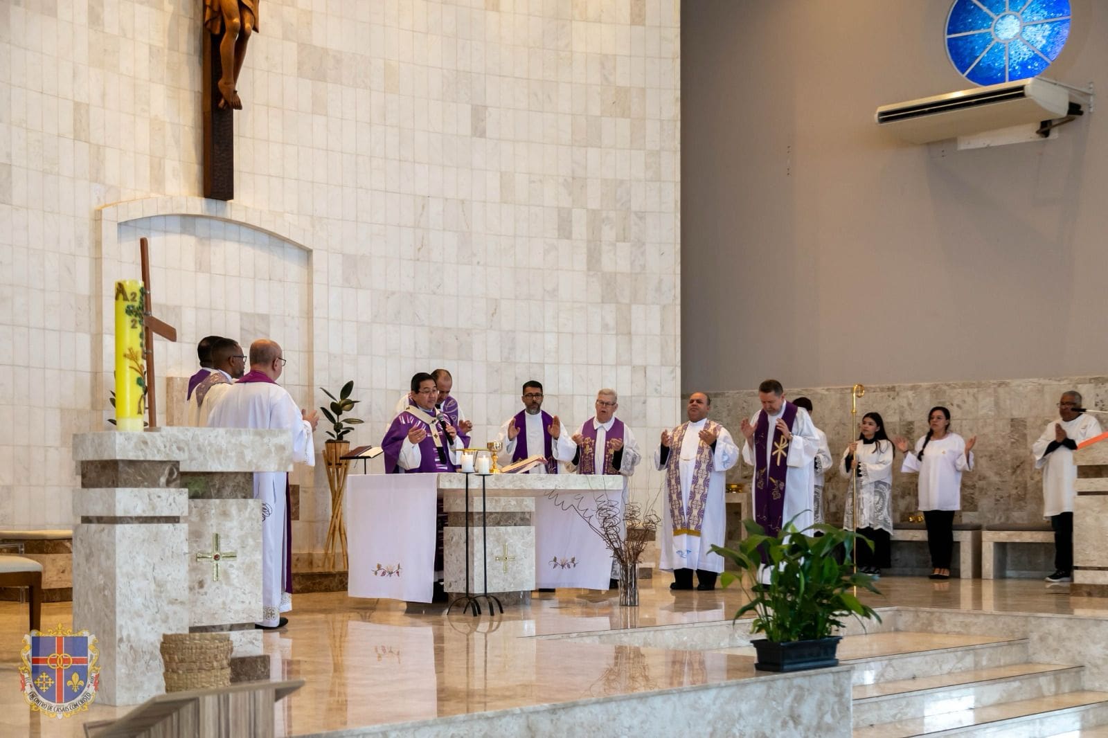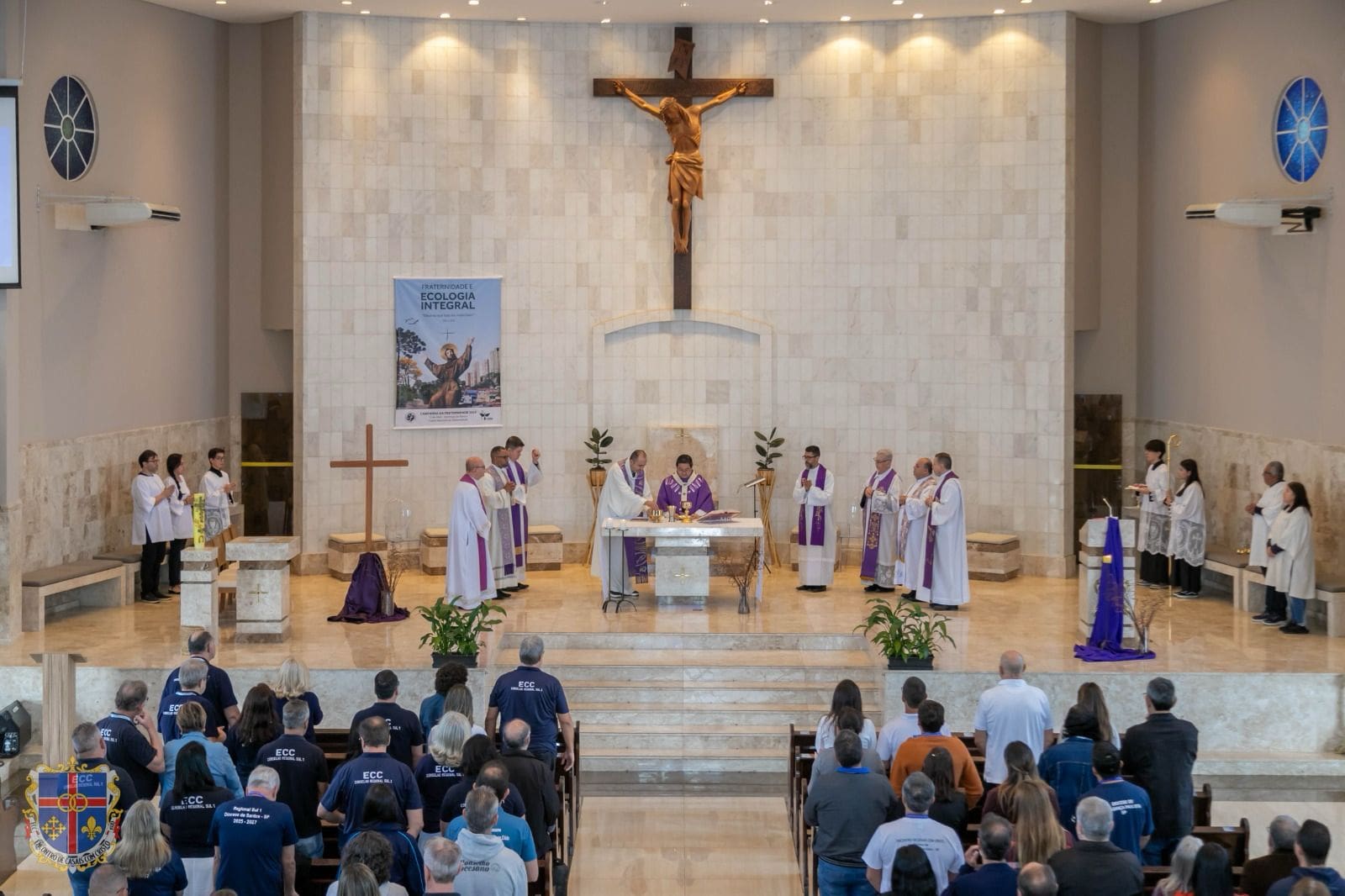 Um dos pontos altos da assembleia foi a Santa Missa, presidida por Dom Júlio Endi Akamine, arcebispo de Sorocaba, e concelebrada pelos padres presentes. A celebração foi um momento de profunda espiritualidade e renovação do compromisso missionário dos casais com a Igreja.