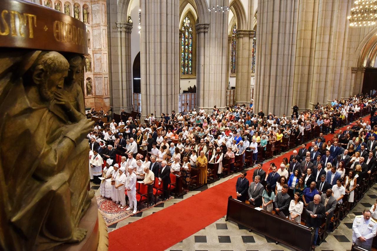A celebração contou, ainda, com a participação de autoridades civis e militares, entre os quais o prefeito Ricardo Nunes e o governador Tarcísio de Freitas. Também estiveram presentes representantes de igrejas de confissão cristã e de diferentes tradições religiosas.
