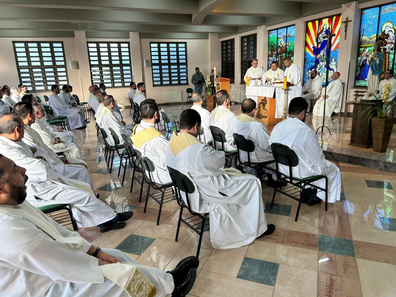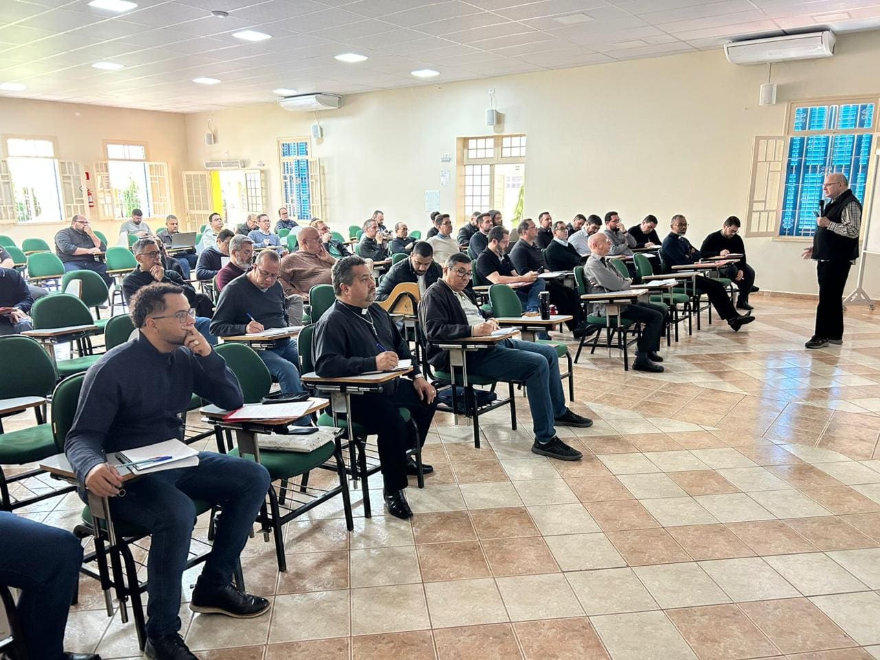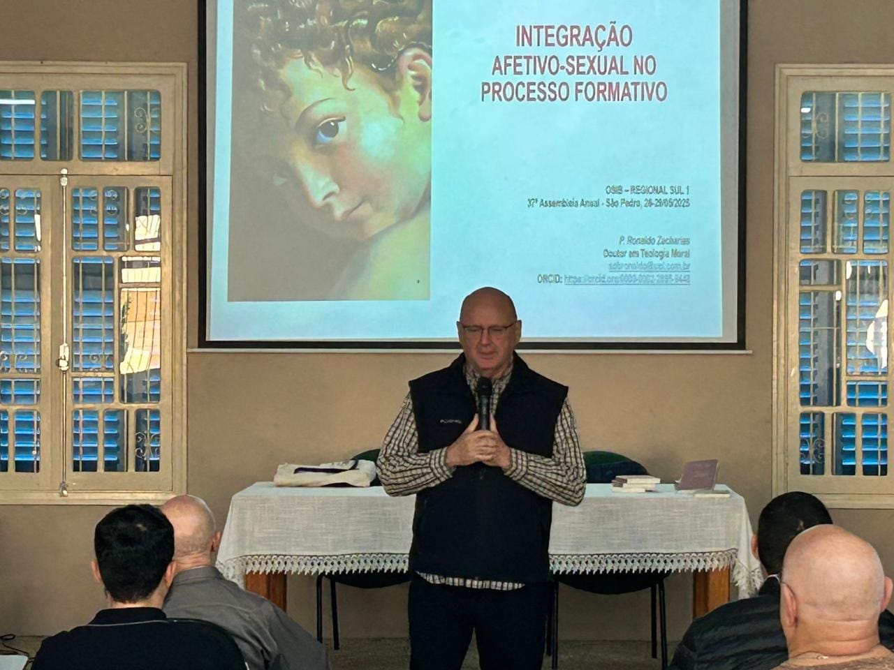 O segundo dia da Assembleia foi marcado por profunda escuta espiritual e enfrentamento realista dos desafios formativos. Na homilia da Missa, Dom Paulo Roberto Beloto, bispo diocesano de França é referencial da Organização dos Seminários e Institutos do Brasil (OSIB) no Regional Sul 1, destacou a ação consoladora do Espírito Santo, especialmente nos momentos de desânimo e incerteza da missão formativa. Ressaltou ainda o dom do discernimento como essencial para acompanhar jovens marcados por dúvidas e conflitos interiores. “Como está o nosso relacionamento com o Espírito Santo?”, provocou o bispo, convidando os formadores a se deixarem conduzir por Ele com alegria e docilidade.