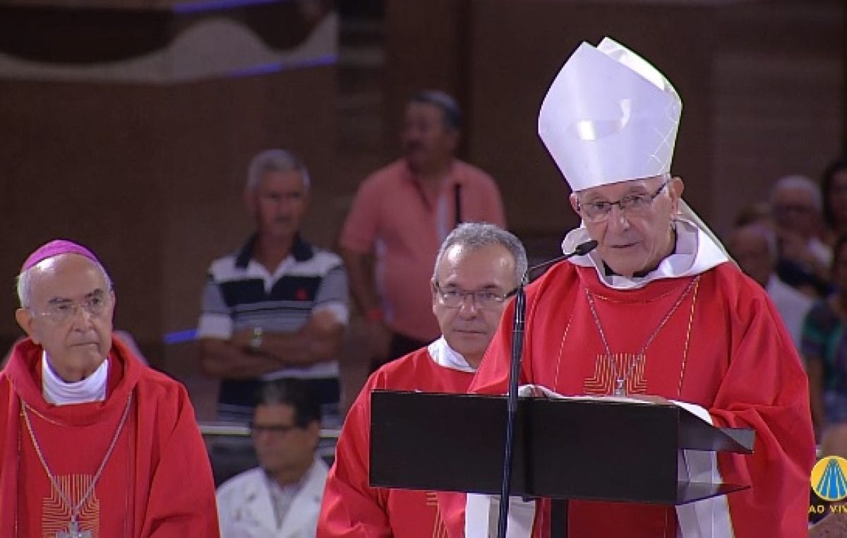 Celebrando os apóstolos São Felipe e São Tiago e o terceiro dia da 57ª Assembleia Geral da Conferência Nacional dos Bispos do Brasil (CNBB), o bispo emérito de Mogi das Cruzes (SP), dom Paulo Antonino Mascarenhas Roxo, presidiu a Celebração Eucarística desta sexta-feira, 3, no altar central do Santuário Nacional de Aparecida (SP).