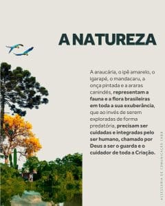 Em 2025, a Campanha da Fraternidade traz como tema “Fraternidade e Ecologia Integral” e o lema “Deus viu que tudo era muito bom” (Gn 1,31).