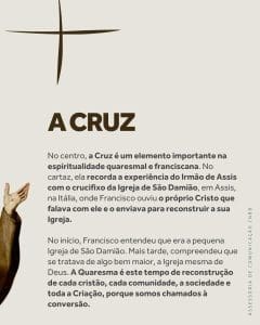 A identidade visual da campanha, desenvolvida por Paulo Augusto Cruz, designer e comunicólogo de Brasília (DF), destaca São Francisco de Assis e a cruz, símbolos centrais da espiritualidade franciscana e da Quaresma, reforçando nossa identidade cristã.