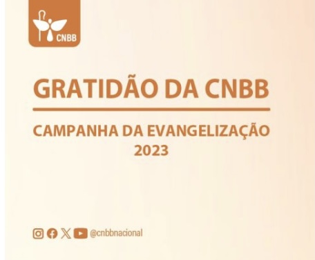 CNBB AGRADECE AS DOAÇÕES À COLETA NACIONAL DA CAMPANHA PARA A EVANGELIZAÇÃO 2023 20/12/2023 Leia Mais