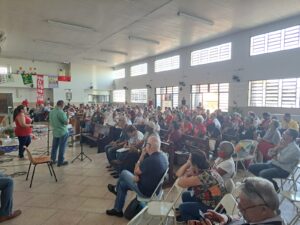 Pela manhã, houve a explanação dos assessores. Maria Cecília iniciou sua fala, dizendo que a crise da sociedade afeta em cheio a Igreja porque a Igreja está no mundo, porque somos pessoas que estamos e atuamos no mundo, como membros da Igreja. O Concílio Vaticano II redefiniu a missão da Igreja para ser servidora das pessoas que vivem no mundo moderno. A Igreja se insere no mundo como servidora, com pés no chão da história. Porém, a caminhada sinodal proposta no Concílio, apresentou um retrocesso com a realização do Sínodo dos Bispos de 1985, que atingiu a caminhada das comunidades e a força da profecia. Essa é uma realidade que continua latejando até hoje, que atinge grande parte do clero, como é apresentado na pesquisa de campo, no livro “O Novo Rosto do Clero, perfil dos padres novos no Brasil”, de autoria do Pe. Agenor Brighenti. O assessor Pe. Antonio Manzato falou sobre o agir das comunidades eclesiais de base na criação de um novo céu e uma nova terra, tomando por base o texto-base do 15º Intereclesial das CEBs. Afirmou que não podemos cruzar os braços e achar que vai acontecer por milagre o novo céu a nova terra. Questionou: como preparar as lideranças das CEBs? O novo céu e a nova terra não é para ser pensado no estilo neoliberal, mas no estilo do “Bem Viver” dos povos originários, que inspira uma nova civilização. A Comunidade Eclesial de Base é onde se vive a comunhão e participação, que tem o DNA do bem viver, onde os leigos e leigas são protagonistas porque conquistam espaço de participação, fazendo acontecer numa forma comunitária, a Igreja. Manter sempre o nome CEBs, porque se muda o nome, muda-se a sua natureza. CEBs é o novo jeito de ser Igreja, portanto, cuidar do nome é cuidar de sua natureza.