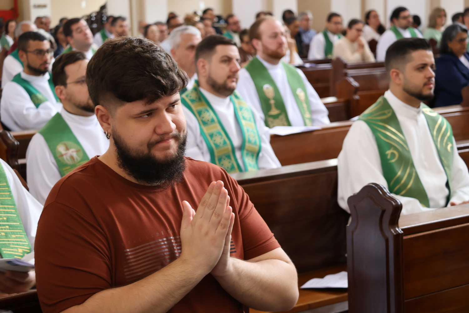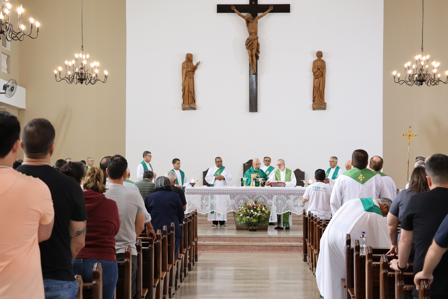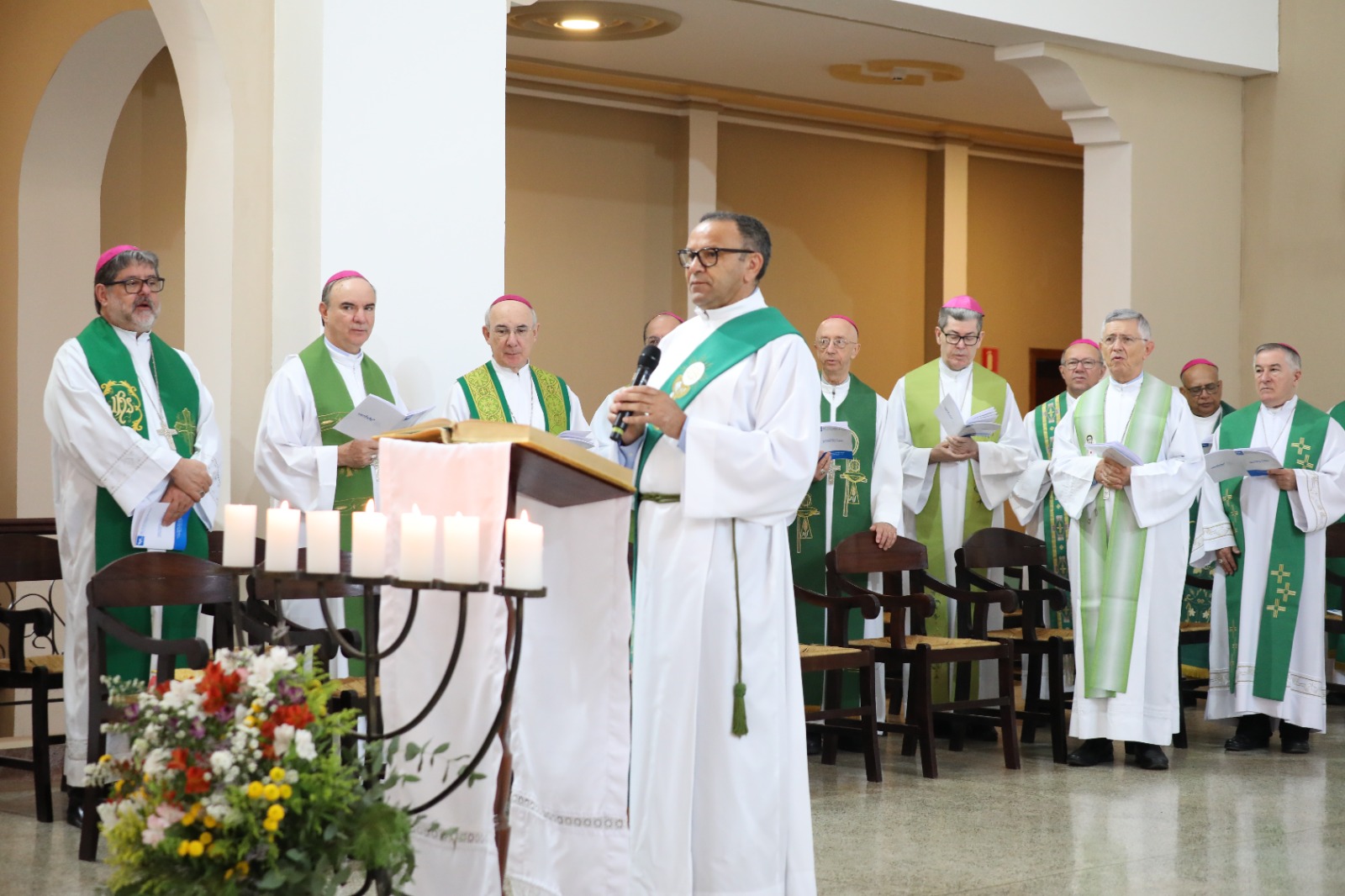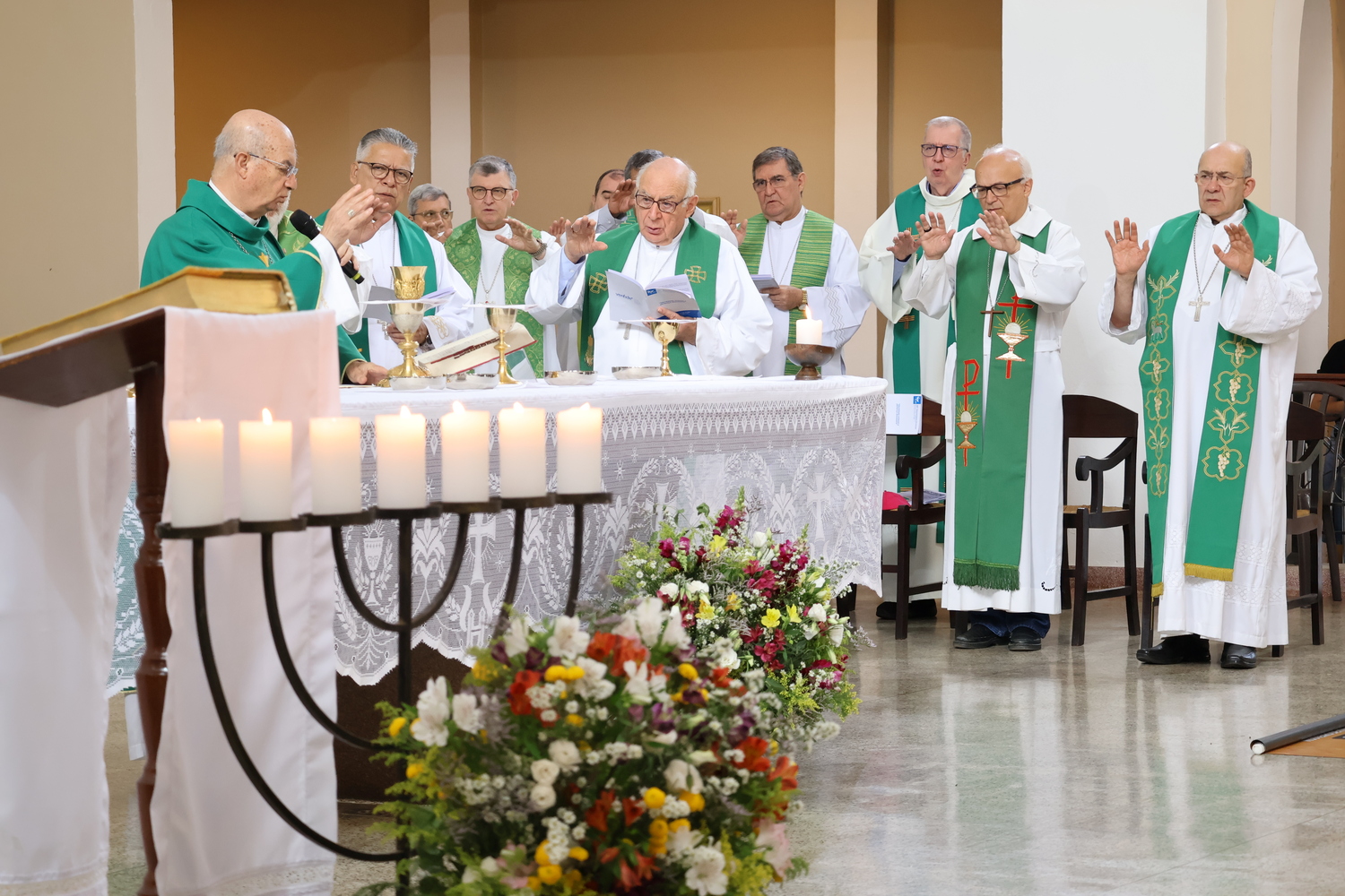 A Santa Missa foi oferecida em sufrágio da alma de Dom José Moreira Melo, bispo emérito de Itapeva, falecido na noite de sábado, dia 25. Na ocasião, em nome do Regional, Dom Moacir se solidarizou com a Diocese de Itapeva e congregou a Assembleia em oração, agradecendo a Deus pelo legado de Dom José.