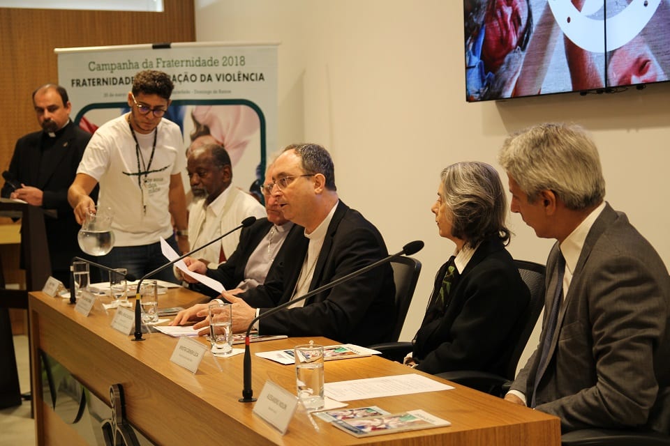 Na manhã desta quarta-feira, 14 de fevereiro, na sede provisória da Conferência Nacional dos Bispos do Brasil (CNBB), foi aberta oficialmente a Campanha da Fraternidade (CF) 2018. Este ano, a Campanha trata da “Fraternidade e a superação da violência”. O presidente da entidade, cardeal Sergio da Rocha, e o secretário-geral, dom Leonardo Steiner, receberam autoridades para o evento: a presidente do Supremo Tribunal Federal (STF), ministra Cármen Lúcia, o coordenador da Frente Parlamentar pela Prevenção da Violência e Redução de Homicídios, deputado Alessandro Molon, e o presidente da Comissão Brasileira de Justiça e Paz (CBJP), Carlos Alves Moura.