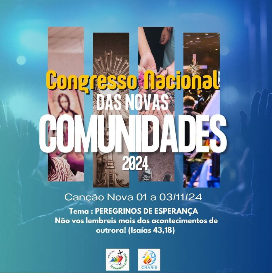 A Canção Nova irá sediar nos próximos dias 01, 02 e 03 de novembro o Congresso Nacional das Novas Comunidades. O evento é promovido pela Comissão Nacional das Novas Comunidades que está dentro do organismo CHARIS Brasil. Em 2024 o congresso irá abordar a temática do jubileu de 2025 “Peregrinos de Esperança” com o texto bíblico do profeta Isaías no capítulo 43,18 “Não vos lembrei mais dos acontecimentos de outrora!”