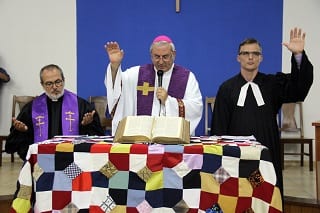 Em um culto ecumênico, Dom Cesar Teixeira, bispo diocesano de São José dos Campos, pastor Marcus Ziemann, da Igreja Luterana e pastor Tércio Paulo de Almeida, da Igreja Presbiteriana fizeram a apresentação do Texto Base da CFE 2016, em São José dos Campos. O evento aconteceu na noite de segunda-feira, 15 de fevereiro, no auditório do seminário Santa Teresinha. Padres, leigos, membros da coordenação diocesana da CF, representantes dos poderes legislativo e executivo e especialistas no tema estiveram presentes.