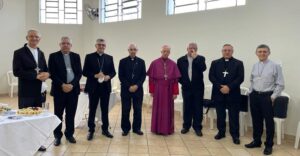 A Missa Solene aconteceu às 10h30min na Catedral Imaculada Conceição, em Franca. Os Bispos do Regional Sul 1, marcaram presença na solenidade dos 50 anos de criação da Diocese de Franca.  Na foto abaixo, da esquerda para direita: Dom Moacir  (Bispo de Votuporanga), Dom Devair (Bispo de Piracicaba), Dom Pedro Luiz Stringhini (Bispo de Mogi das Cruzes e presidente do Regional Sul 1 da CNBB), Dom Moacir Silva (Arcebispo da Província eclesiástica de São José do Rio Preto), Dom Paulo Roberto Beloto  (Bispo de Franca), Dom Caetano Ferrari  (Bispo Emérito de Bauru)