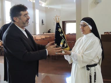 Dom João esteve presente no mosteiro, no dia 13 de maio, e a pedido do bispo à Madre Superiora, irmã Lucila Durand foi de que, neste período em que a Imagem de Nossa Senhora Aparecida ali permanecer, coloque em suas intenções de oração a Diocese de Osasco, bem como o Oitavo Plano Diocesano da Ação Evangelizadora, a Comissão Vida e Família da CNBB, na qual é Presidente, o clero diocesano, as pastorais, movimentos, associações e novas comunidades, os seminaristas bem como os religiosos, religiosas e consagrados.