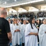Um dos momentos mais marcantes da celebração foi a entrega da cruz a cada catequista, sinal de sua missão de anunciar e testemunhar o Evangelho. “É uma alegria imensa poder estar aqui hoje, após quatro anos de formação. A nossa diocese deu toda uma formação para os nossos catequistas”, afirmou, também, uma catequista que trilhou o itinerário formativo.