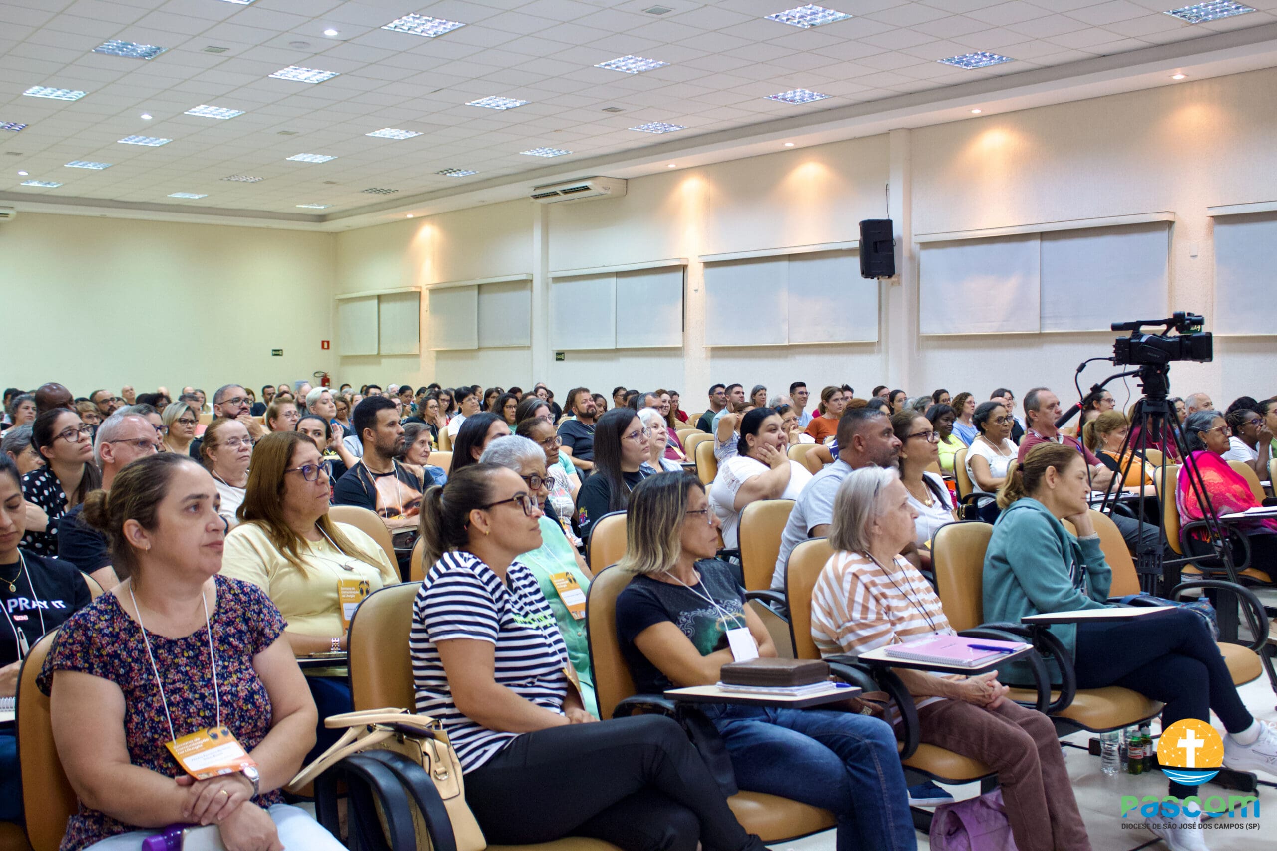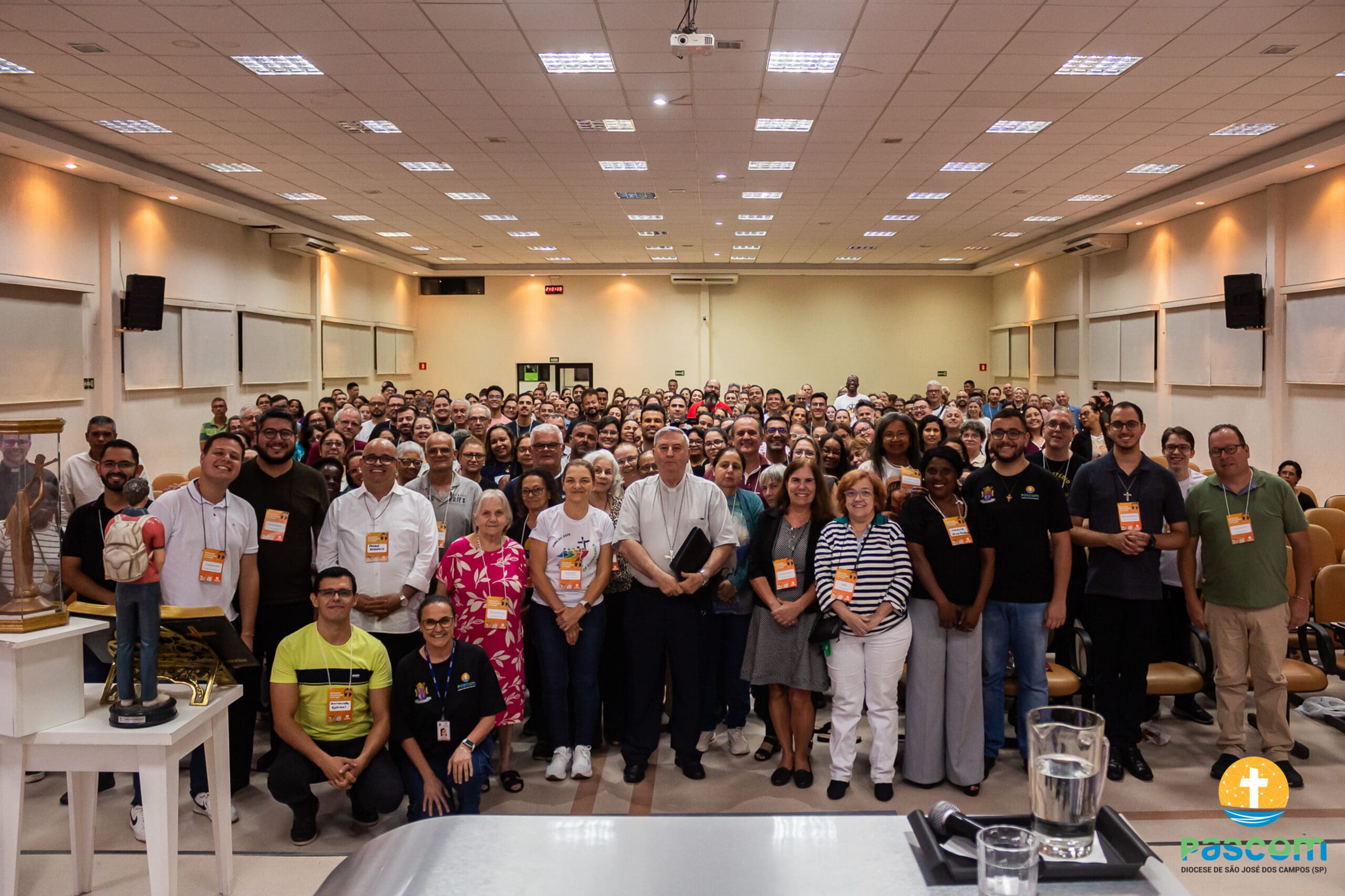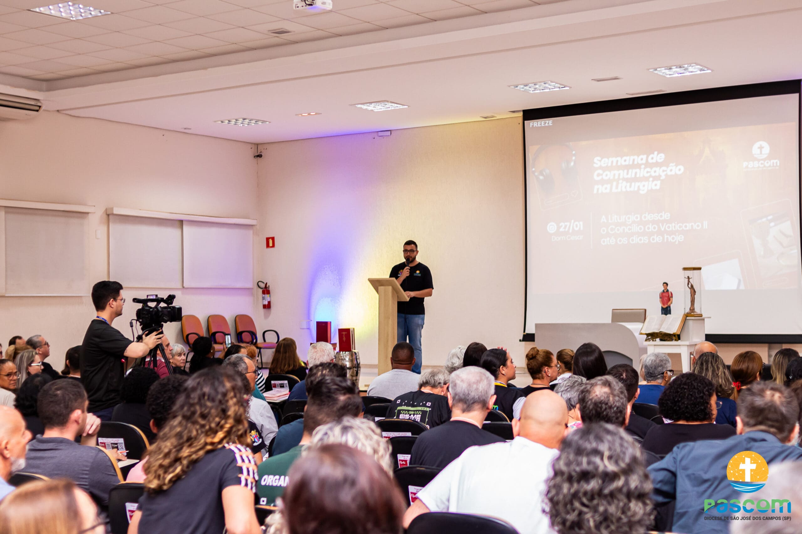 A Pastoral da Comunicação da Diocese de São José dos Campos/SP promoveu um evento de formação para aproximadamente 500 agentes da Pastoral Litúrgica e PASCOM entre os dias 27 e 31 de janeiro de 2025, na Paróquia Espírito Santo. Guiados pelo tema: “Os olhos de todos estavam fixos n´Ele” (Lc 4,20b), os participantes puderam optar pela modalidade presencial, que contou com a presença de 300 pessoas todos os dias, bem como na forma online, disponibilizada para outros 200 agentes que acompanharam via internet.
