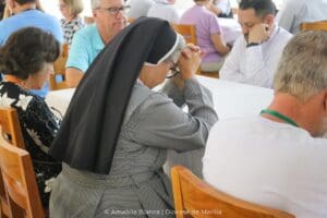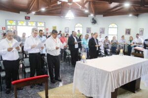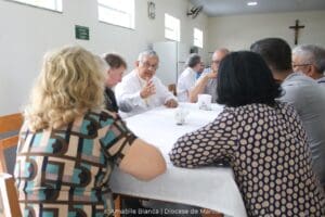O encontro contou com a assessoria do Pe. Tiago Barbosa, assessor da Pastoral da Comunicação (Pascom) na Diocese de Marília e no Regional Sul 1 da Conferência Nacional dos Bispos do Brasil (CNBB), e foi marcado pela aplicação da metodologia de discernimento comunitário “Conversa no Espírito”, utilizada no ano passado durante os trabalhos do Sínodo sobre a Sinodalidade, em Roma, e da 61ª edição da Assembleia Geral (AG) da CNBB, em Aparecida.