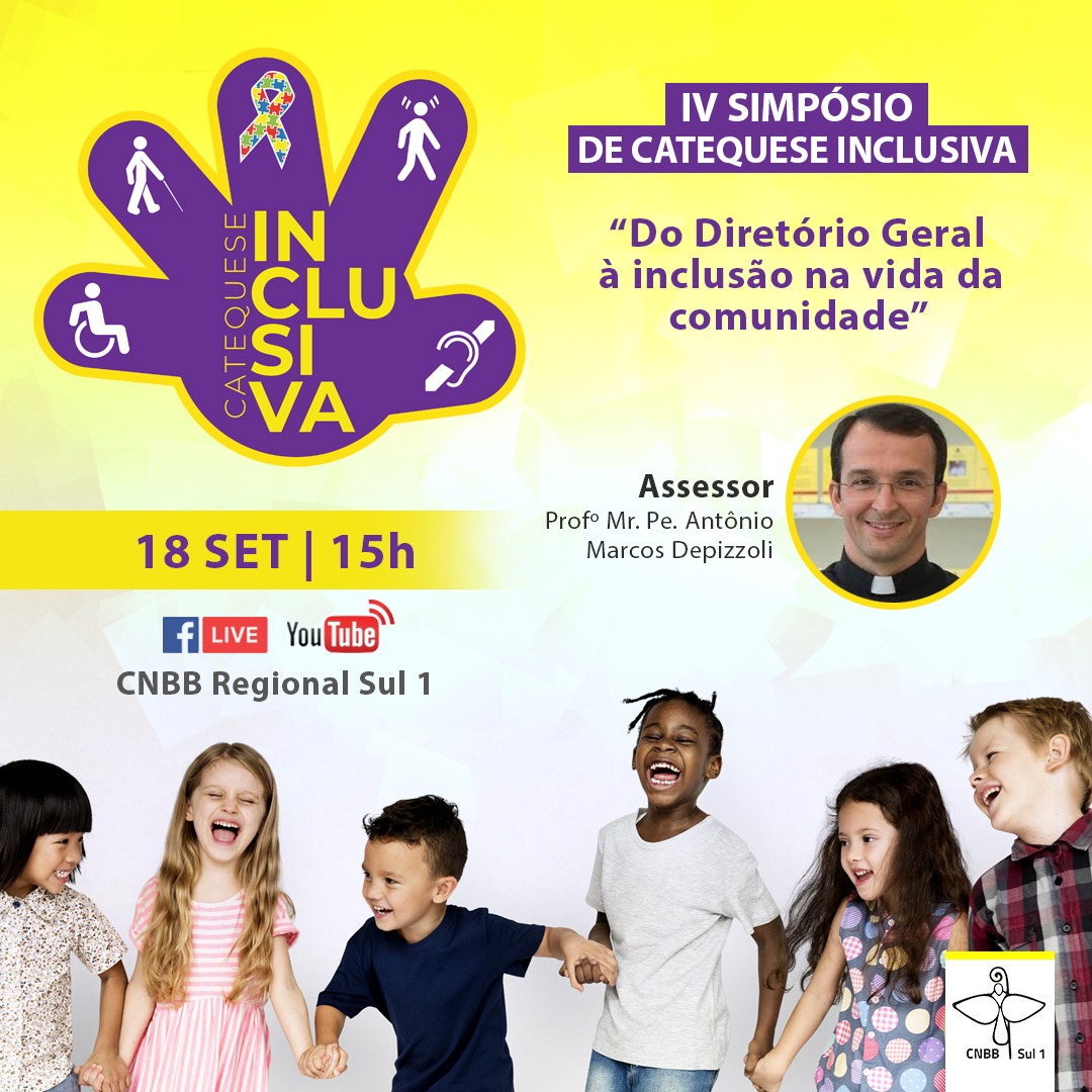 Com o tema “Do Diretório Geral à inclusão na vida da comunidade”, será realizado no dia 18 de setembro, às 15h, o IV Simpósio de Catequese Inclusiva.
