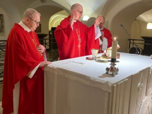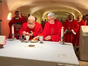 “Peçamos a graça de ter a coragem de O seguir de perto. Nós já sabemos: isso é perigoso. Custa a vida. Mas a fé de Pedro nos sustenta, move e incentiva”, concluiu dom João Inácio junto à cripta de São Pedro.