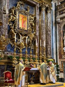 O arcebispo metropolitano de Sorocaba, dom Júlio Endi Akamine, SAC, presidiu Missa nesta manhã na Basílica Santa Maria Maior. A celebração foi o primeiro momento da Visita Ad Limina de hoje, dia 22.