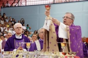 Na tarde deste domingo (21), Dom Milton Kenan Júnior tomou posse canônica como sexto bispo da Diocese de Barretos. A celebração, que aconteceu no Ginásio de Esportes João Batista da Rocha “Rochão”, foi concelebrada pelo cardeal arcebispo de São Paulo, Dom Odilo Scherer, o arcebispo de Ribeirão Preto, Dom Moacir Silva, Dom Edmilson Caetano (quinto bispo diocesano e agora bispo de Guarulhos), Dom Antonio Gaspar (quarto bispo e atualmente é bispo emérito de Barretos), e demais bispos da Província Eclesiástica de Ribeirão Preto (7 dioceses), do Regional Sul 1 (estado de São Paulo) e outros Regionais da CNBB. No total estiveram presentes 25 bispos e mais de 100 padres da diocese e convidados.