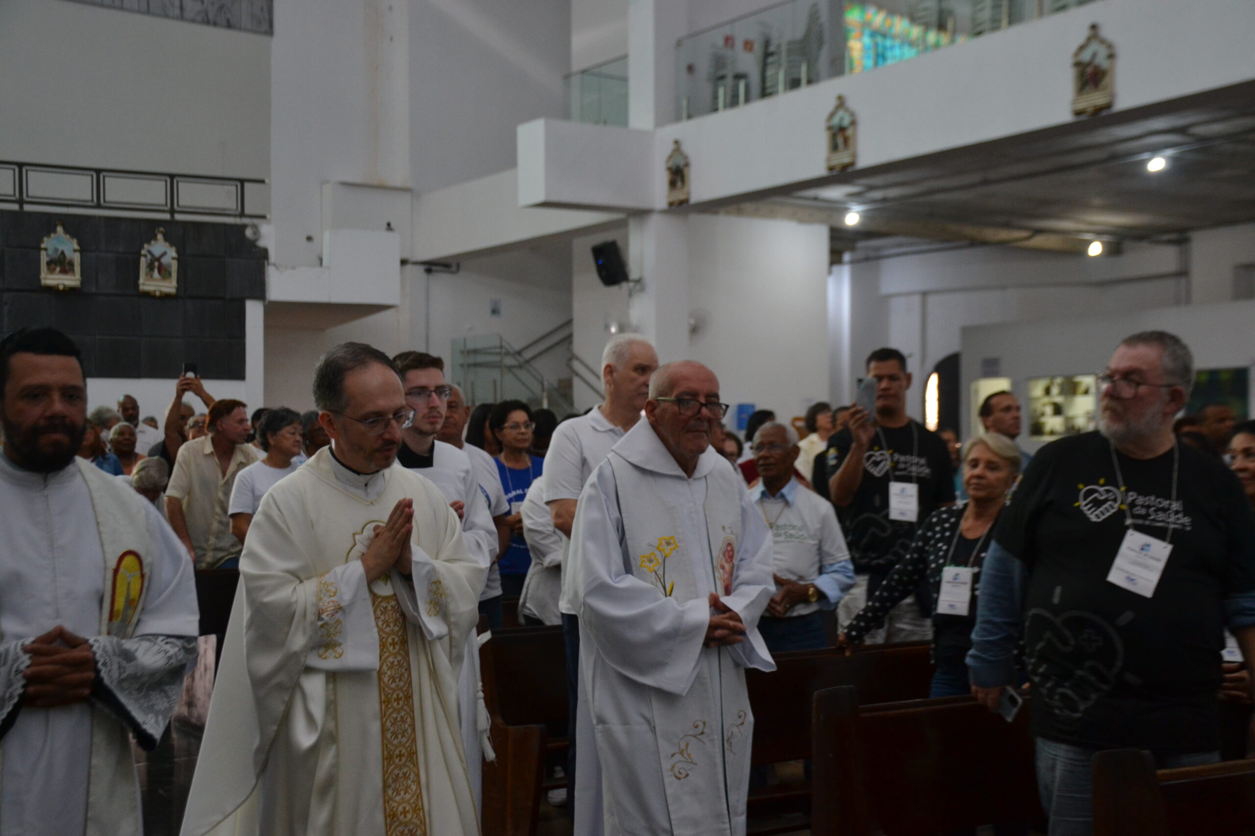 O encerramento foi marcado pela celebração da Santa Missa, presidida pelo Padre Alexandre Douglas Crispim, Assistente Eclesiástico da Pastoral da Saúde da Diocese de Osasco, que acolheu calorosamente todos os participantes. A missa contou com a concelebração de diversos padres e diáconos, simbolizando a comunhão e o agradecimento pelo encontro frutífero.