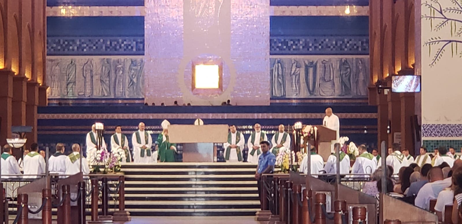 O Encontro Paulistão dos Presbíteros teve início com a celebração da Santa Missa no Santuário Nacional de Aparecida, presidida por Dom João Inácio Müller, Arcebispo de Campinas e Bispo Referencial dos Presbíteros no Regional Sul-1 da CNBB. A Eucaristia contou com a concelebração de Dom Moacir Silva, Arcebispo Metropolitano de Ribeirão Preto e Presidente do Regional Sul-1.