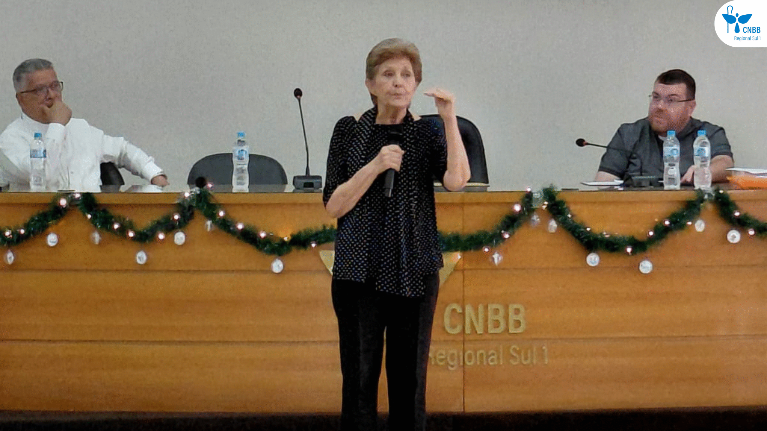 Em seguida, os participantes acompanharam uma reflexão sobre a conjuntura social, apresentada pela Dra. Ermínia Maricato, professora da USP e reconhecida urbanista. A convidada abordou o tema da moradia, destacando desafios estruturais, perspectivas e caminhos possíveis para políticas públicas mais justas e eficazes. Sua fala contribuiu de modo especial para a preparação do Regional rumo à Campanha da Fraternidade 2026, que terá como foco central a questão habitacional no Brasil.