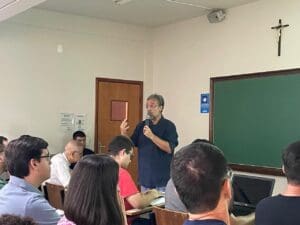 Na primeira parte da formação, ocorrida na sexta-feira, dia 5, o psicólogo focou sua apresentação no tema fundamental “Conhecimento de si mesmo”. Esse tópico, essencial para o desenvolvimento pessoal e espiritual, proporcionou aos participantes uma oportunidade de reflexão sobre suas próprias trajetórias e identidades, fundamentais para o discernimento vocacional.