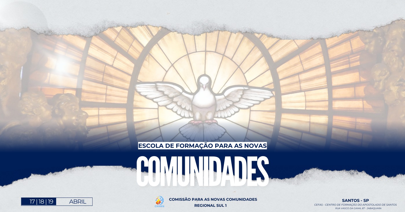 A Comissão para as Novas Comunidades do Regional Sul 1 promoverá, nos dias 17, 18 e 19 de abril, a Escola de Formação – Carismas, um encontro formativo destinado aos membros das Novas Comunidades do Estado de São Paulo.