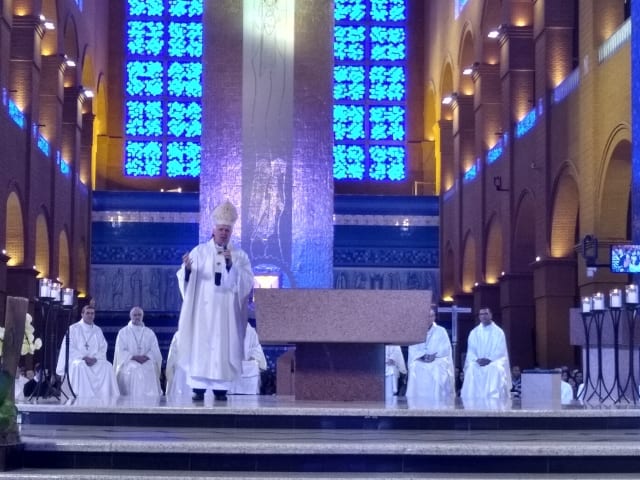 Na missa das 10h, foi a vez do novo presidente da Comissão Vida e Família, Dom Ricardo Hoepers dirigir uma palavra de incentivo aos romeiros e especialmente, a todas as lideranças presentes.