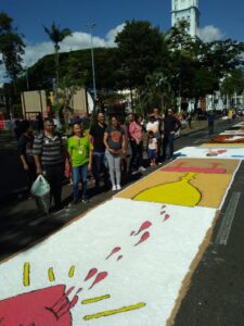 A Pastoral do Surdo da Diocese de Franca se fez presente na Festa de Corpus Christi no último dia 8 de junho (quinta-feira) para a confecção dos tapetes (tradição religiosa que ocorre em várias partes do mundo, expressão artística que envolve a confecção de desenhos coloridos feitos com materiais como serragem colorida, pétalas de flores, areia, sal, entre outros).