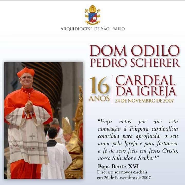 Há exatos 16 anos, Dom Odilo Pedro Scherer tornava-se cardeal da Igreja.