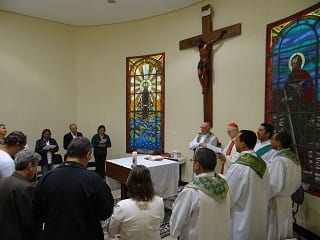 reduzida2Na manhã desta segunda-feira (05), foi realizada na Capela da sede Regional Sul 1 da CNBB, a Missa de envio do Missionário padre Osvaldo Vieira Costa à Amazônia.