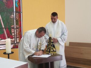 O Pe. Fabiano assume, pela segunda vez, a missão de servir na Diocese de Coari, no Amazonas, e já recebeu suas responsabilidades no projeto com grande entusiasmo. Na homilia, Dom Júlio, ressaltou a coragem de Davi, enfatizando que ao praticarmos o bem, suas consequências ultrapassam os limites do mérito pessoal. “Ser missionário é semear a justiça, é dedicar-se ao bem das pessoas”, indicou o bispo.