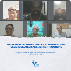 No dia 13 de março, missionários do Regional Sul 1, da Conferência Nacional dos Bispos do Brasil (CNBB), participaram de um encontro on-line para compartilhar experiências e desafios vividos nas dioceses da Amazônia pela Missão Sul 1 Norte 1.