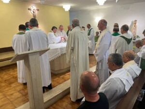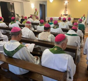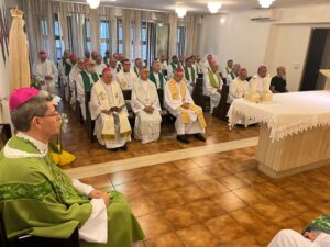 Neste domingo, dia 25, os bispos das provinciais de Botucatu, Campinas e Ribeirão Preto se reuniram pela manhã no hotel onde estão hospedados em Roma para a celebração Eucarística.