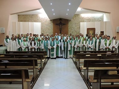 Desde segunda-feira (11), dom Cesar Teixeira, bispo diocesano e padres da Diocese de São José dos Campos participam de retiro anual, no Santuário da Mãe Rainha em Atibaia (SP). O encontro que tem como pregador o bispo diocesano de Barretos, Dom Milton Kenan Júnior, acontece até dia 15 de julho. .