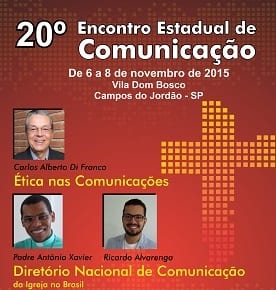 O evento, que neste ano se inspira no tema “Ética nas comunicações sob a Ótica do Diretório de Comunicação da Igreja no Brasil, Documento 99 da CNBB”, terá a assessoria do jornalista Carlos Alberto Di Franco, do padre Antônio Xavier Batista e Ricardo Alvarenga, da comissão nacional da CNBB.