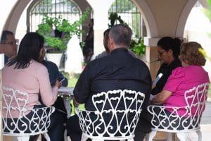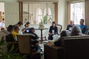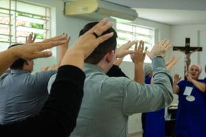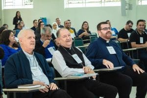 Após as palavras de acolhida, todos se reuniram na capela do Seminário para a oração inicial, marcando o início do encontro.