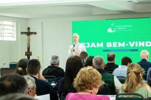 O padre Luis Fernando da Silva, Secretário Executivo do Regional Sul 1 da CNBB, conduziu a assessoria do encontro, abordando as expectativas do Papa Francisco para o Jubileu. Em sua apresentação, padre Luis explicou o significado do Jubileu e compartilhou orientações sobre gestos concretos e o cronograma de atividades. Além disso, destacou como a Província Eclesiástica de Aparecida pode trabalhar o tema do Jubileu de 2025, tendo como referência a Prioridade Pastoral definida em Assembleia Estadual: “Formar e animar comunidades eclesiais missionárias, a partir da Palavra de Deus, indo ao encontro e gerando proximidade”.