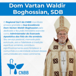 O Regional Sul-1 da Conferência Nacional dos Bispos do Brasil (CNBB) recebeu, com espírito de comunhão e esperança, a notícia de que o Santo Padre, Papa Leão XIV, aceitou a renúncia de Sua Excelência Vartan Waldir Boghossian ao ofício de Exarca Apostólico do Exarcado Apostólico para os fiéis de rito armênio residentes na América Latina e no México e nomeou Sua Eminência Cardeal Odilo Scherer como Administrador Apostólico sede vacante da mesma circunscrição para o Brasil.