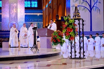 O momento central foi a celebração das 9h presidida por Dom Jaime Pedro Kohl, bispo diocesano de Osósrio (RS) e concelebrada pelo bispo de Franca (SP) e referencial da Osib do Regional Sul 1 da Conferência Nacional dos Bispos do Brasil (CNBB), dom Paulo Beloto; Dom Moacir Silva, arcebispo de Ribeirão Preto; Dom Pedro Luiz Stringhini, bispo de Mogi das Cruzes e Vice Presidente do Regional Sul 1. Também na ocasião estava visitando o santuário um bispo da África. A missa também foi concelebrada por dezenas de sacerdotes formadores de seminário.