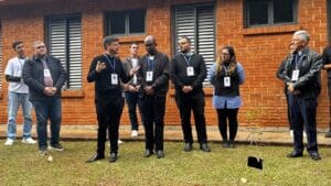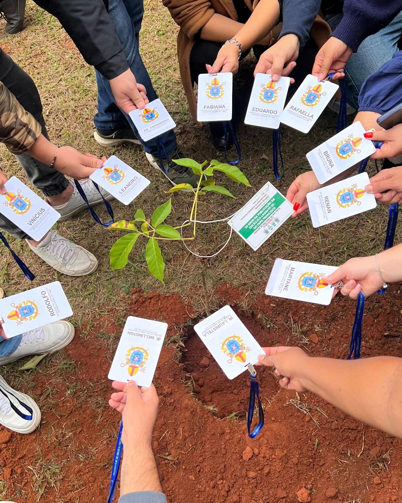 Em seguida, foi realizado um gesto concreto: o plantio de quatro mudas de ipê, representando cada uma das arqui/dioceses do sub-regional, em sintonia com os 10 anos da publicação da encíclica Laudato Si’, do Papa Francisco, reafirmando o compromisso da juventude e da pastoral da comunicação com o cuidado da Casa Comum.